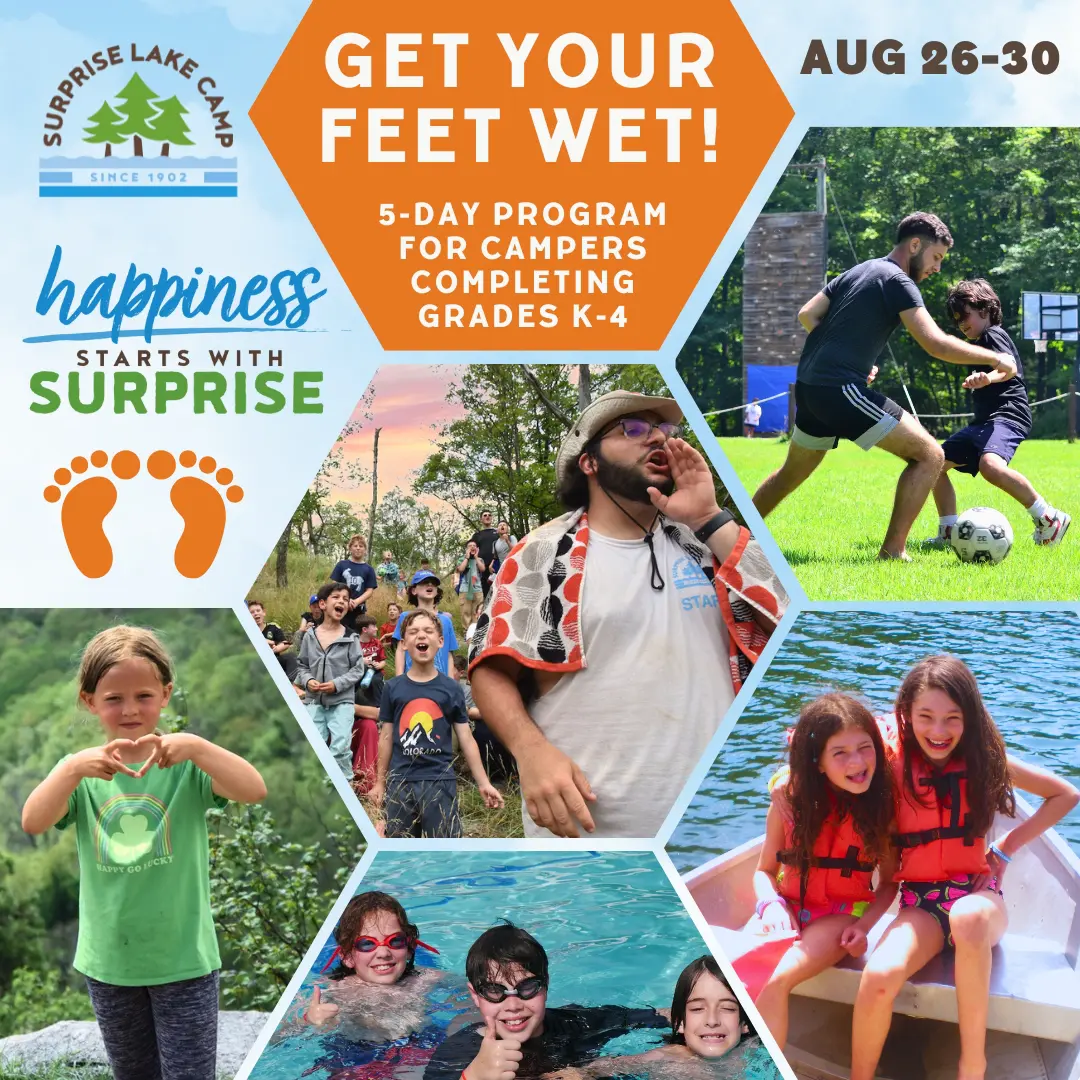 Surprise Lake Camp 382 Lake Surprise Road, Cold Spring, NY, United StatesWrap up your current K-4th grader’s summer with Get Your Feet Wet. This mini-adventure for new campers helps your child...
