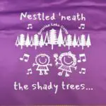 18″ x 18″ Purple Pillow with white lettering and design on front.
